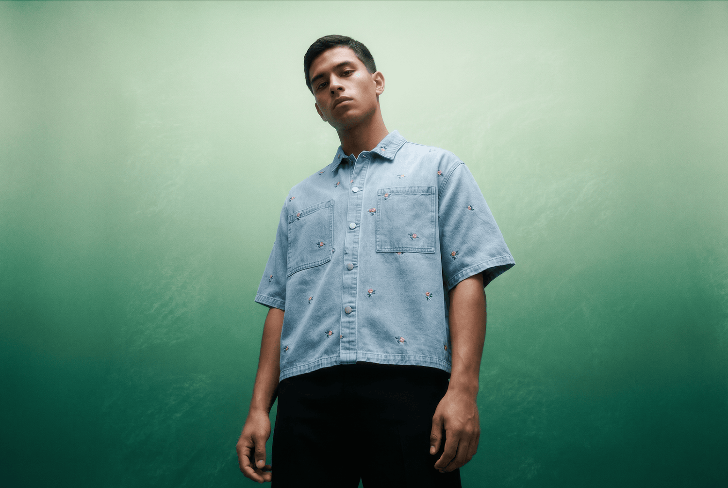 Embroidered Denim Shirt with Floral Detail