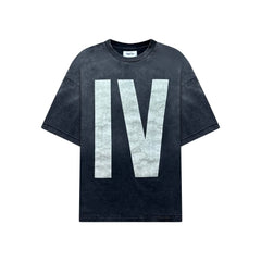Front view of the Graphic Tee: ERP IdyllVie - Resilient Heavyweight Cotton Tshirt featuring bold 'IV' print on black 100% cotton fabric.