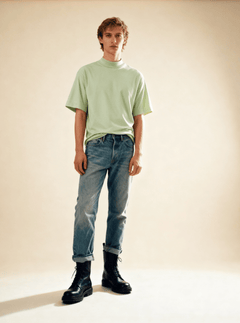 Matcha Green Mock Neck Cotton T-Shirt - Comfortable & Stylish