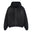 Female model in hooded black zip-up hoodie with studded detailing. Vintage-inspired design made from 100% cotton for comfort and style.