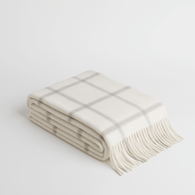 Couverture Picton Alpaca à carreaux blanc cassé et gris