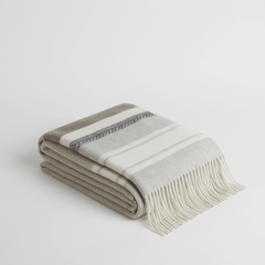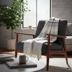 Elevate your home with the IdyllVie Muskoka merino wool throw blanket, where elegance meets comfort in a timeless design.Featuring a rich brown base with thin ivory stripes and subtle light grey accents, this throw blends contemporary style with classic charm.