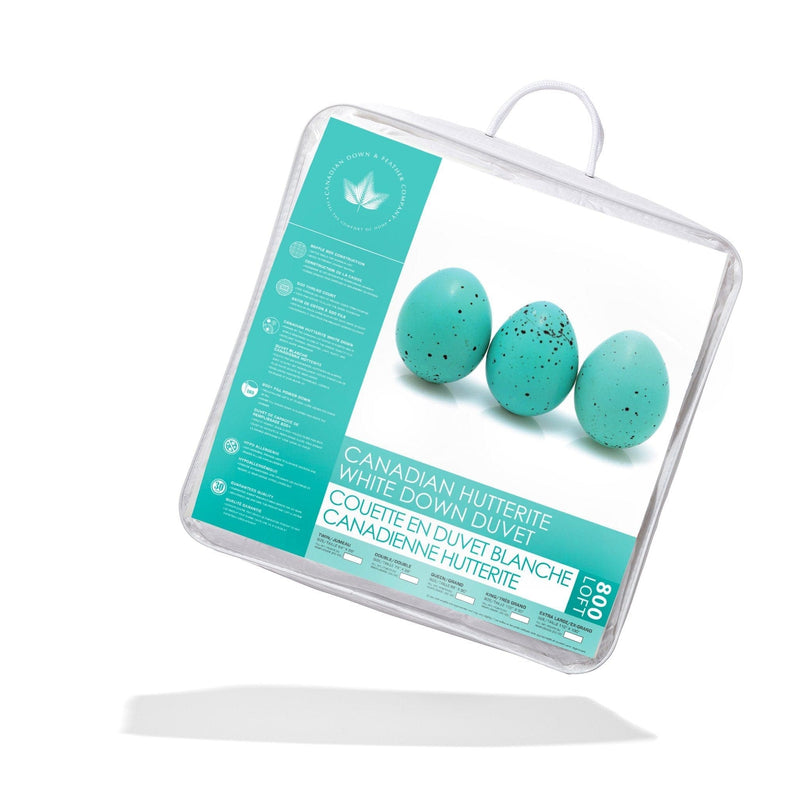 - Duvet de canard blanc des Hutterites canadiens : Élevé par les Hutterites canadiens en Alberta, il est mondialement reconnu comme l’un des garnissages de la plus haute qualité.