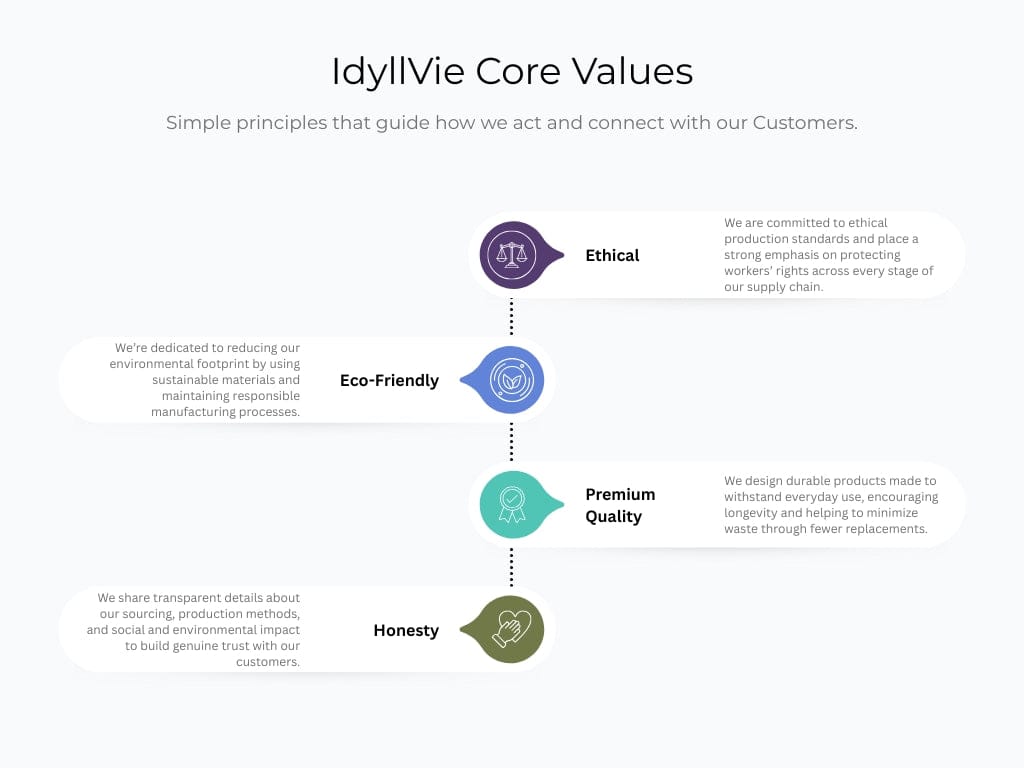 Embrace the IdyllVie way of living, a life where beauty, quality, and artisanal craftsmanship enrich every moment. Explore our collections and discover the pieces that resonate with you, your style, and your space. Welcome to a life where every choice is an expression of elegance, sustainability, and unparalleled quality.