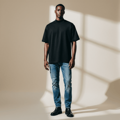The Black Mock Neck T-Shirt heavyweight fabric provides a crisp look while ensuring you stay comfortable throughout the day. The mock neck style offers a contemporary edge that pairs effortlessly with any outfit, from laid-back jeans to sleek trousers. Its black hue is timeless, allowing for endless styling possibilities for both casual and slightly formal settings. Embrace the ease of movement and the promise of durability that the Black Mock Neck T-Shirt brings.