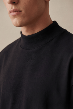 Unlock a world of comfort and style with the Black Mock Neck T-Shirt, where modern design meets everyday functionality.