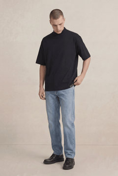 Black Mock Neck Cotton T-Shirt