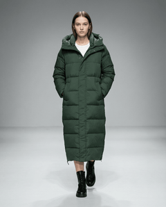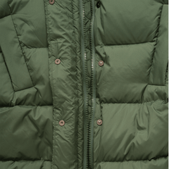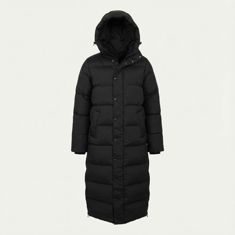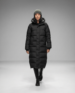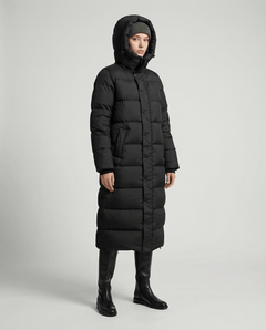 Filled with 90% white duck down and 10% feathers at 700 fill power, this long puffer keeps you cozy in temperatures as low as -40°C while maintaining a sleek, lightweight profile.