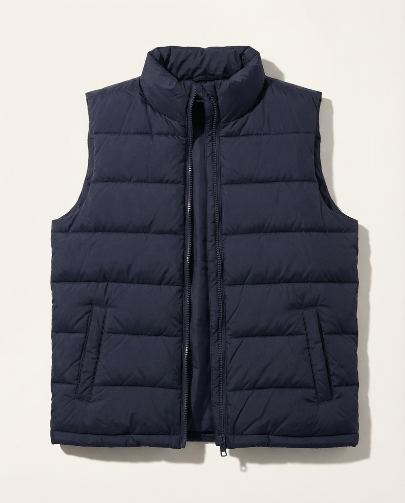 Smaller, denser quilting pattern gives it a crisp, structured shape—designed to sit cleanly over tees or sweatshirts. -
